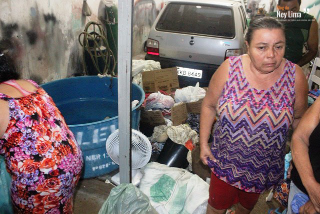 A água invadiu várias residências e os moradores tentaram salvar o que puderam. Muitos terão que dormir fora de suas casas.